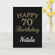 Parties scintillant Noir et Or 70e Anniversaire Carte avec nom personnalisé. Pour plus de personnalisation, cliquez sur le bouton "Customiser" et utilisez notre outil de conception pour modifier ce modèle.