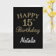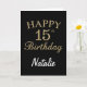 Carte de 15e anniversaire de la Parties scintillant Black and Gold avec nom personnalisé.Pour plus de personnalisation, cliquez sur le bouton "Customiser" et utilisez notre outil de conception pour modifier ce modèle.