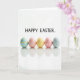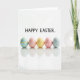Designed with a calm spring look, the scene places five decorated egg-shaped objects in a neat row along the lower third of a bright white background. Each one carries a soft pastel shade—light blue, gentle pink, warm yellow, another blush pink, and a speckled blue—arranged like friends standing close together 🐰. They sit on a glossy surface that shows a faint reflection, like a quiet nod between companions. Above them, the words “HAPPY EASTER.” appear centered and slightly higher on the page in a friendly, flowing style, colored in a medium gray. The decorations mix tiny dots, slim stripes, and zigzag lines, giving each egg its own personality while still feeling connected 🌷. The wide open white space around everything keeps the focus on the group, like a simple stage for a soft, affectionate moment. Along the bottom, the row of pastel eggs stretches evenly from left to right with their subtle reflections shimmering underneath.