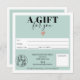 Carte Pastel turquoise bleu carré certificat cadeau logo