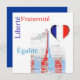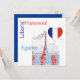 Carte d'invitation personnalisée avec design patriotique français. Il présente la Tour Eiffel et les principes de l'égalité, de la citoyenneté et des droits inaliénables.Il est conçu aux couleurs du drapeau national de la France.Design par Alma Wad.