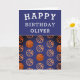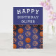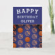 Pattern Sport Basketball Kid Card. Modern basketball birthday card for a boy or a girl loves basketball. Le basket-ball est breveté par le biais de ballons de basket orange différents sur le dark purple color. Personalize with your name.