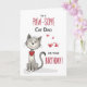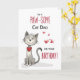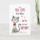 Cette carte d'anniversaire amusante et excentrique du chat fera sourire n'importe quel papa de chat ! Doté d'un charmant chaton gris aux yeux larges, d'un collier de coeur rouge et de coeurs rouges flottants, le design est propre et fantaisiste sur un arrière - plan blanc. L'avant-message audacieux dit : "À un papa chatte de la PAW à votre anniversaire !" et est associé à un message humoristique et sincère à l'intérieur qui capture le lien quotidien entre le chat et l'homme. Un excellent choix pour n'importe quel père de chat fier qui comprend les joies et les humeurs de la compagnie de félins.