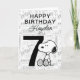 Célébrez l'anniversaire de votre enfant avec cette carte Snoopy super mignonne. Personnalisez avec le nom et l'âge de votre enfant.