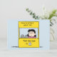Send your message with a touch of classic comic strip wit using this Peanuts flat card. The design features the iconic Lucy van Pelt lounging at her "Psychiatric Help" booth, waiting for her next patient against a soothing light blue background. With the famous "The Doctor Is In" signage, this card strikes the perfect balance between nostalgia and humor. Ideally suited for quick notes, thank yous, quirky invitations, or just saying hello, this high-quality flat card comes with a matching white envelope, making your correspondence stand out in any mailbox.