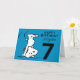 Célébrez l'anniversaire de votre enfant avec cette carte Snoopy super mignonne. Personnalisez avec le nom et l'âge de votre enfant.