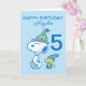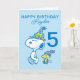 Célébrez l'anniversaire de votre enfant avec cette carte Snoopy super mignonne. Personnalisez avec le nom et l'âge de votre enfant.