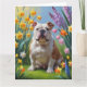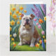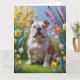 Un chien joyeux est assis paisiblement sur une herbe verte luxuriante, entouré de fleurs printanières colorées sous un ciel bleu doux. Cette peinture numérique à l'huile capture un moment serein avec des coups de pinceau expressifs, des couleurs chaudes et un sentiment de joie douce.