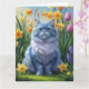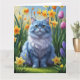 Carte Peinture de fleurs de printemps du chat bleu orien
