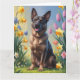 Un chien joyeux est assis paisiblement sur une herbe verte luxuriante, entouré de floraisons printanières colorées sous un ciel bleu doux. Cette peinture numérique à l'huile capture un moment serein avec des coups de pinceau expressifs, des couleurs chaudes et un sentiment de joie douce.