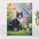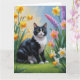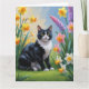 Carte Peinture de fleurs printanières de chat smoking