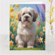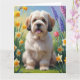 Carte Peinture de fleurs printanières de chien Lhasa Aps