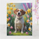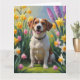 Un chien joyeux est assis paisiblement sur une herbe verte luxuriante, entouré de floraisons printanières colorées sous un ciel bleu doux. Cette peinture numérique à l'huile capture un moment serein avec des coups de pinceau expressifs, des couleurs chaudes et un sentiment de joie douce.