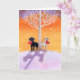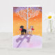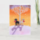 Carte de peinture de Labradors en Hiver pour les fans de Labrador ! Innocent Labrador noir et Labrador jaune debout derrière l'arbre d'hiver avec un cœur rouge chacun. Beau paysage de coucher de soleil en hiver. Beaucoup de cœurs dans l'image. Peint par Naomi Ochiai du Japon.