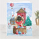 Carte Pékingese dans une maison de chien de Noël enneigé