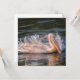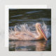 Un pélican majestueux flotte gracieusement sur l'eau, ses plumes élégantes scintillant de gouttelettes qui secouent vigoureusement les restes d'une plongée récente. Le contraste avec l'arrière - plan noir profond accentue l'élégance des gouttelettes d'eau prises en plein air, créant une scène de nature captivante en mouvement.