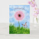 Carte Pensées pour vous avec fleur de marguerite-gerbera rose et papillon.