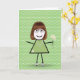 Baguette fille avec marguerites, cheveux, collier de perle, baskets, lunettes sur un pois vert et blanc arrière - plan pour penser à vous.
