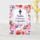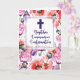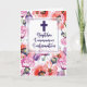 Félicitez quelqu'un qui a terminé son RCIA et qui entre en pleine communion dans l'Église catholique. Des fleurs de pavot en rose, pourpre et rouge entourent les trois sacrements du baptême, de la communion et de la confirmation.
