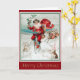 Carte de Noël représentant le Père Noël à vélo avec des lapins et des cerfs.