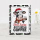 Cette carte festive présente une vache fatiguée mais adorable avec un chapeau et une écharpe de Père Noël tenant une tasse de café avec le message Père Noël, Apporte Juste du Café. Parfaite pour les amateurs de caféine, les lève-tôt et tous ceux qui survivent à l'effervescence des fêtes avec une tasse chaude à la main.