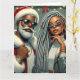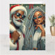 Père Noël et son compagnon sont prêts à célébrer, tous deux vêtus de tenues de Noël élégantes. Ils se tiennent sur un fond de lumières et de décorations de fêtes, prêts pour une réunion festive.