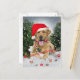 Le Laboratoire Jaune portant un chapeau de Père Noël et tenant un os de chien décoré est une carte de Noël avec un message de Père Noël Paws.
