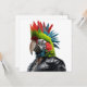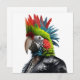 Funny Punk Rocker Parrot avec coiffure mohican portant une veste en cuir.
