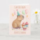 It’s a capy birthday and everyone’s invited! This adorable birthday card features a cheerful capybara front and center, ready to party with a festive hat, cake, and confetti. This design brings quirky charm and gentle humour to any celebration. Whether for kids, teens, or capybara-loving grownups, it’s the perfect way to send birthday wishes with a smile. Personalize the Outside and inside with your own message to make it extra special!