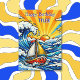 Personalized birthday card with a cute nautical pop art oceanic theme. Waves, a sun, sailboat and a shark blue, yellow and red pop art style graphics. Add name in the personalize area.