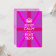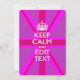 Votre personnalisation Keep Calm vous dit sur un décor de prise en union rose vif. Un style personnalisé Keep Calm en disant sur un cadeau de nature. Essayez humour ou fantaisie sur vos mots créatifs sur deux lignes de texte modifiables. N'oubliez pas d'utiliser les lettres CAPITAL pour obtenir les meilleurs résultats. Utilisez le lien "Demandez à ce concepteur" pour nous contacter avec vos demandes de design spécial ou pour obtenir de l'aide sur vos besoins de personnalisation.