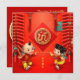 Festive salutation traditionnelle chinoise avec pétards, noeuds chanceux et nuages auspicieux + coupé en papier Snake doré + deux enfants mignons pour souhaiter Bonne Année. Conception sur invitation par carte carré. Carte de voeux, carte postale de vacances et plus bientôt... Parfait pour le Nouvel An Chinois du Serpent 2025.