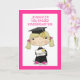 Petite fille diplômée aux cheveux blonds porte un casquette noir et une robe et détient un certificat. Il dit, "félicitations et vous avez réussi" et feuille un espace pour vous de le customiser avec le nom et la note. Idéal pour les élèves du primaire ! ©Christie Black Creations from the Heart.