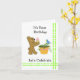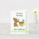 Un design mignon avec un nounours sucré tenant un cône de crème glacée rose. Un jardinier et un petit oiseau bleu assis sur les vignes. Customisez le message comme vous le souhaitez.