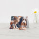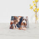 Petite fille mignonne avec des pigeons blonds et les mains pliées dans la prière avec Bearded collie chien carte blanche note