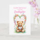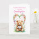 Envoyez des voeux d'anniversaire à votre petite-fille pour son premier anniversaire de la façon la plus agréable possible avec cette belle carte. Un ours en peluche, devant un bouquet de fleurs colorées, présente un coeur présentant l'âge de 1. Faites de leur anniversaire un souvenir inoubliable avec cette carte de charme. Une carte de 1er anniversaire pour une petite-fille.