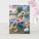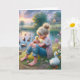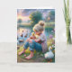 Carte Petite fille avec des canards pour l'anniversaire