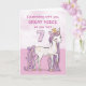 Carte Petite-nièce 7e anniversaire Cheval Rose Avec Cour