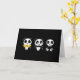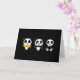 Deux petits pandas se reposant dans l'obscurité avec un squelette minuscule. Un panda utilise un tee - shirt jaune avec le mot "meh" là-dessus.