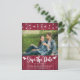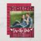 Couple photo Save the Date mariage carte de faire-part avec informations sur le site Web, bois de grange rouge avec police blanche.
