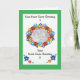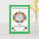 Un Carte photo avec une bordure verte et un "cadre" ovale fleuri pour votre photo, beaucoup d'espace pour vos propres salutations, à l'intérieur et sur la couverture avant. Photo d'un collage de papier peint à la main par Judy Adamson.