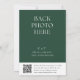 Partagez votre photo de fiançailles et votre site web de mariage dans un design cohérent avec cette carte photo double face 5x7 créée pour aller avec un faire-part de mariage en vélin ou une carte "save the date" en vélin. Le recto présente une photo verticale pleine page, tandis que le verso comprend un espace pour une deuxième image ainsi que votre site web de mariage et un code QR personnalisable pour que vos invités puissent facilement répondre ou consulter les détails de l'événement. Ce design combine vos photos de fiançailles avec des informations pratiques dans un format moderne et épuré. Idéal pour les célébrations contemporaines, romantiques ou intemporelles, cette carte photo de mariage avec code QR ajoute à la fois du style et de la fonctionnalité à votre papeterie de mariage en vélin.