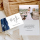 Cette élégante carte de remerciements mariage moderne est ornée d'une bordure en aquarelle bleu marine ornée d'une parties scintillant en faux argent. Le texte avant combine les mots "Merci" en écriture manuscrite gris charbon et les noms de la mariée et du marié en caractères italiques sur un arrière - plan blanc. Customisez l'intérieur de la carte avec votre photo de mariage horizontale préférée et un message personnel à vos invités.