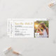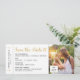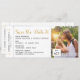 Carte d'embarquement amusante et élégante enregistrez la date d'un mariage de destination avec de l'espace pour ajouter votre photo et beaucoup de place pour les détails de planification de voyage pour vos invités au dos. Une icône romantique au coeur d'un avion et des détails authentiques du billet d'avion rétro incluant des petites flèches, un code à barres et une boîte pour une assignation de sièges dans une police d'ordinateur vintage complètent le look. Les mariages de destination nécessitent un aménagement et des détails supplémentaires pour vos invités avec des informations d'hébergement avant un mariage local, alors assurez-vous d'inclure tout ce que vous pouvez. Si vous voulez simplement sortir le mot pendant que vous élaborez les plans de voyage et d'excursion, le design au dos peut être entièrement supprimé, il suffit de cliquer "customiser plus loin". Paper Grape Destinations on Zazzle se spécialise dans les invitations à thème de voyage et la papeterie de mariage-jour pour le couple aventurier, nomade planifiant leurs noces à l'étranger.