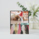 Cette carte de Noël portrait comporte une photo verticale encadrée par une bordure noire avec des arbres géométriques rouges, blancs et or en dessous. Le mélange moderne de motifs et de tons métalliques ajoute une atmosphère de vacances audacieuse et confortable.