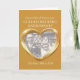 Carte d'anniversaire de mariage doré personnalisée avec la photo de vos parents, l'année de mariage et les mots à l'intérieur. Exemple de texte : Chers maman et papa pour votre anniversaire de mariage d'or 50 ans 25 mai 1969 à 2019. Effet de cœur en métal doré et design par Sarah Trett.