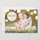 Ce design moderne à carte photo plat "Bonnes Fêtes" est doté d'un joint rond à paille douce en ivoire dans le coin supérieur gauche entouré d'une jolie collection de cercles d'ivoire assortis le long du bord supérieur de la carte. Un accueil contemporain pour famille et amis, ce design met en valeur une belle photo grandeur nature de votre famille sur le devant, agrémentée d'un mélange de typographie branchée et d'un joli motif rayé coordonné sur le dos.