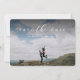 Avec une typographie simple mais élégante, cette carte de conservation de date est un design classique qui présente une seule photo horizontale. Le texte blanc est placé en haut de la photo avec un filtre assombrissant pour une meilleure lisibilité. Le dos est un bleu marine tacheté, mais la couleur est modifiable en cliquant sur "personnaliser".