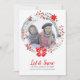 Elégante carte de style plat de Noël blanc et immaculé, avec des graphiques d'une couronne grise, blanche et rouge avec emplacement photo personnalisé à l'intérieur. Personnalisez le texte et l'image personnalisés selon vos besoins de vacances. Des produits correspondants sont disponibles. Photo du modèle de Lorri Lang.
