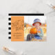Souhaitez à vos amis et à votre famille un Happy Halloween heureux — et partagez une photo préférée — avec notre carte photo moderne Trick ou Treat Halloween. Design propose un arrière - plan orange festif avec "Trick or Treat" sur la typographie moderne en écriture noire et trois lignes de texte personnalisé (salutation, nom de famille et année) flanquées d'illustrations de lignes décoratives. Cartes inversées à bandes horizontales en noir et blanc.